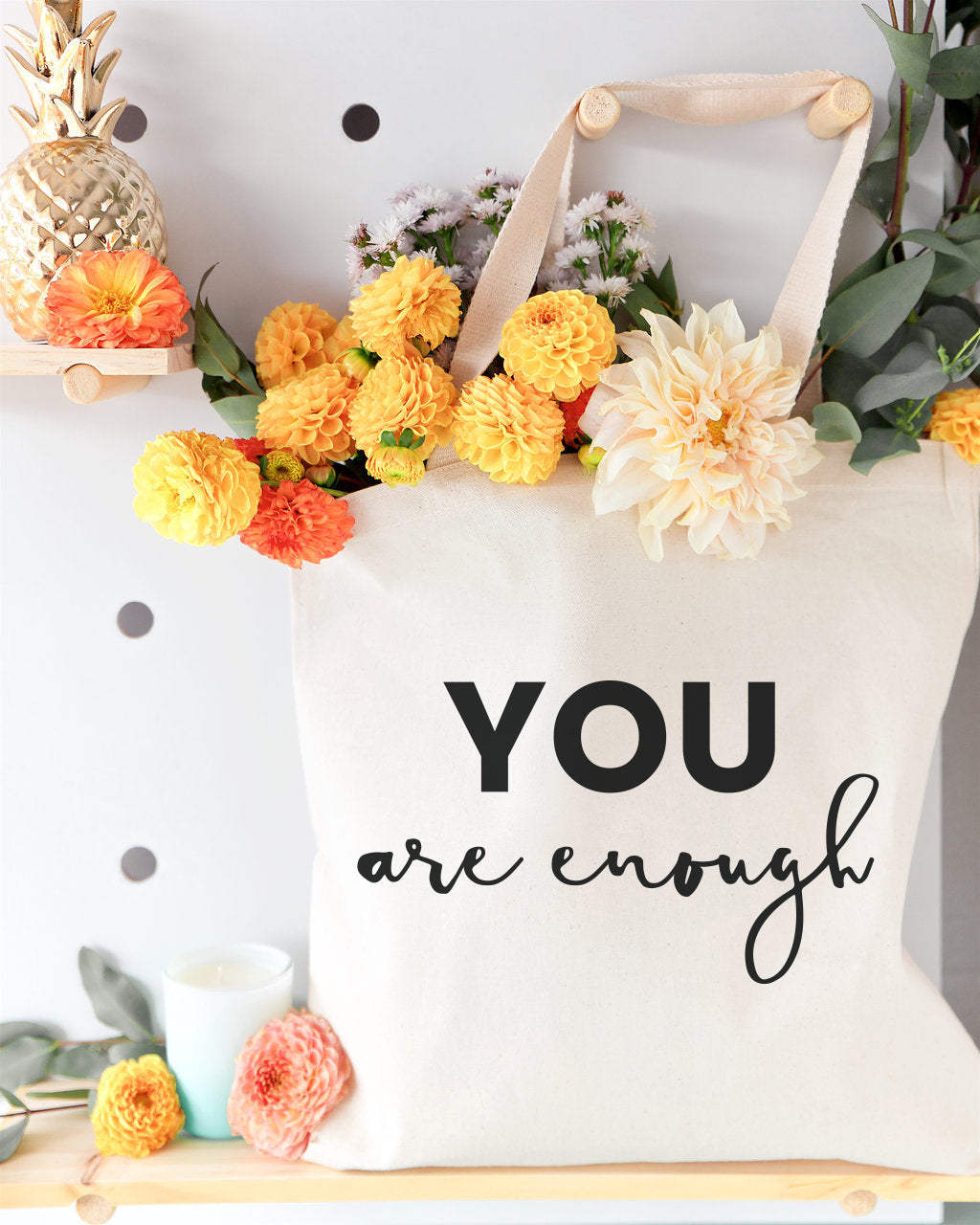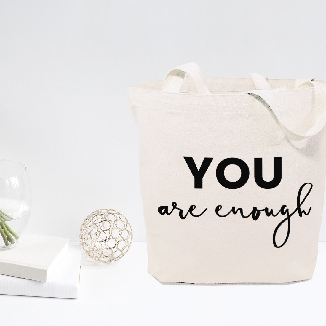 Our 100% cotton canvas tote bags are perfect for everyday use! These beautiful motivational quote natural canvas shopping bags are great for a quick run to the grocery store or the local farmers market. Simple and unique, these eco-friendly handbags are a must-have for carrying books, clothes, make up, shoes and many more! Material: 100% Cotton Canvas Fabric 12-ounce heavy duty canvas Size: 15″ W x 16″ H SPOT CLEAN WITH WARM WATER AND MILD DETERGENT (DO NOT MACHINE WASH) Reusable and Eco-friendly Designed and printed in the USA